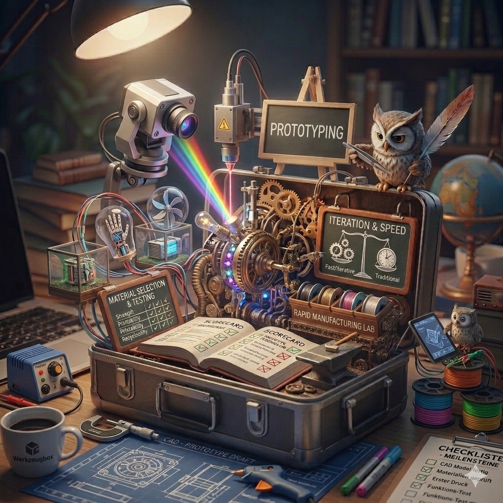 Im Kontext der Werkzeugbox „Wissensmanagement und Innovation“ unterstützt Prototyping dabei, Wissen praktisch anzuwenden, Unsicherheiten zu reduzieren und Innovationen iterativ voranzutreiben.